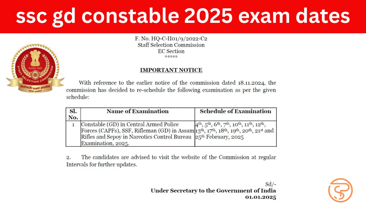 एसएससी जीडी कांस्टेबल परीक्षा तिथि 2025-26 – अंतिम तिथि 31 दिसंबर